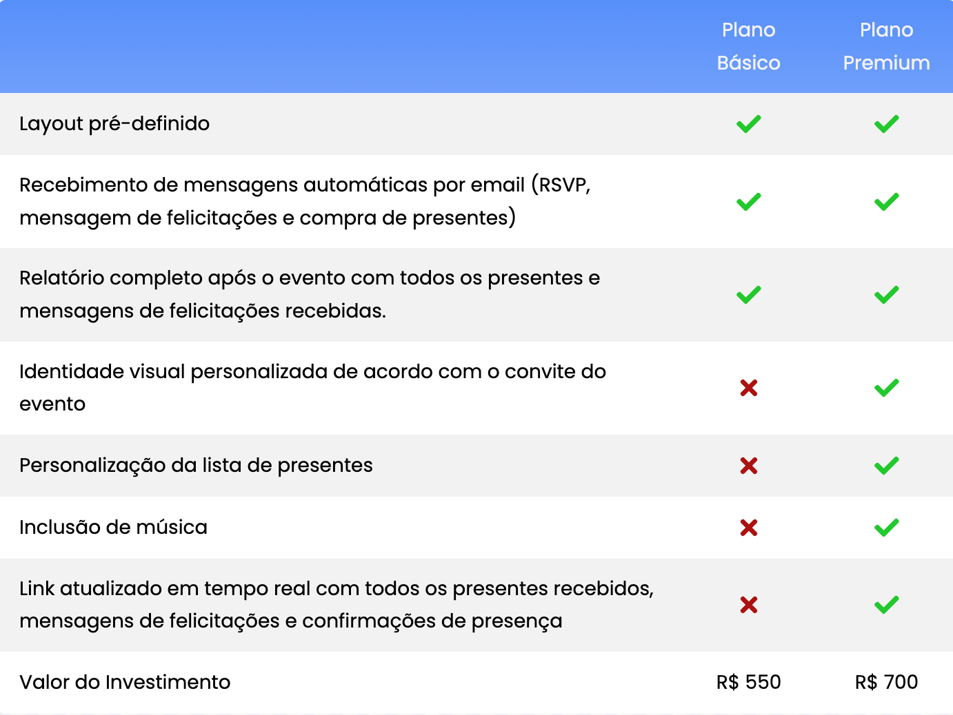Planos disponíveis
